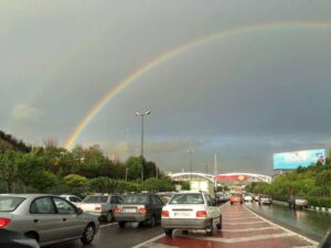 ببینید | آسمان کرج پس از ماه‌ها رنگین کمان به خود دید