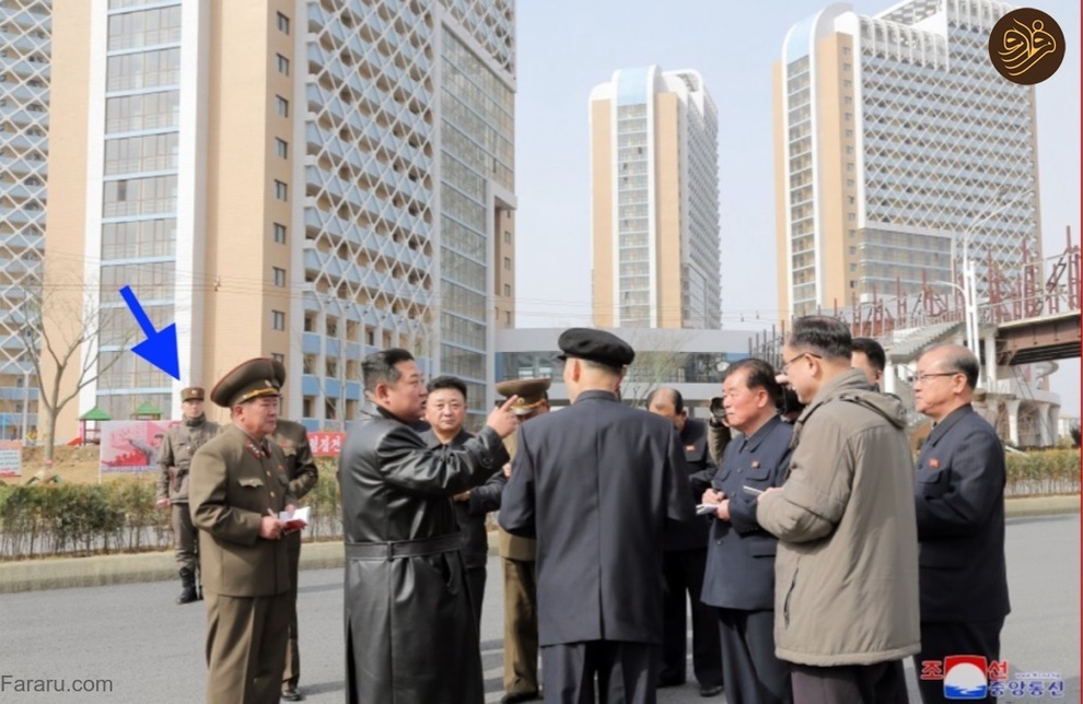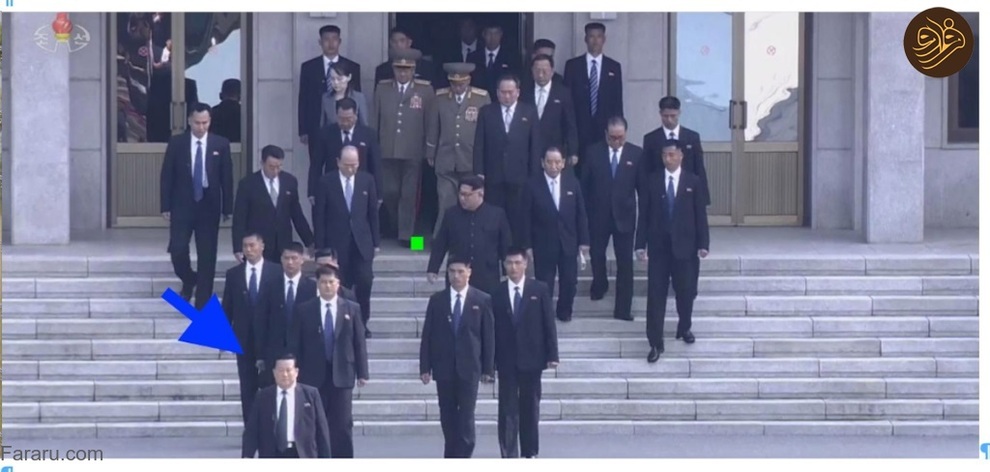 مرد میانسال و چمباتمه زده در سمت چپ این تصویر، ژنرال کیم چول گیو است. یکی از تحلیلگران سابق اطلاعات کره شمالی با نام مستعار “پدربزرگ”، عنوان رسمی او فرمانده بخش گارد کمیسیون امور خارجه است و به نظر میرسد که او مسئول امنیت رهبران کره شمالی بوده است که به کیم جونگ ایل پدر کیم جونگ اون برمی گردد.