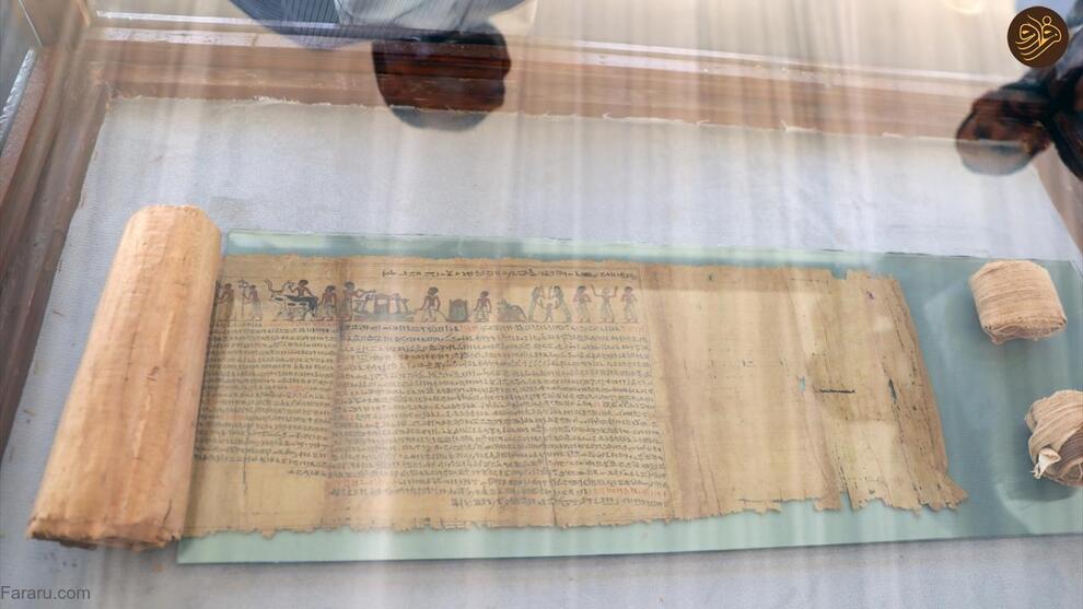 در میان یافتهها یک پاپیروس کامل و به خوبی حفظ شده به طول تقریبی ۱۶ تا ۱۸ متر، با متونی در مورد کتاب مردگان، و یک تابوت چوبی حکاکی شده و رنگی از دختر یکی از کشیشهای اعظم جهوتی وجود داشت.